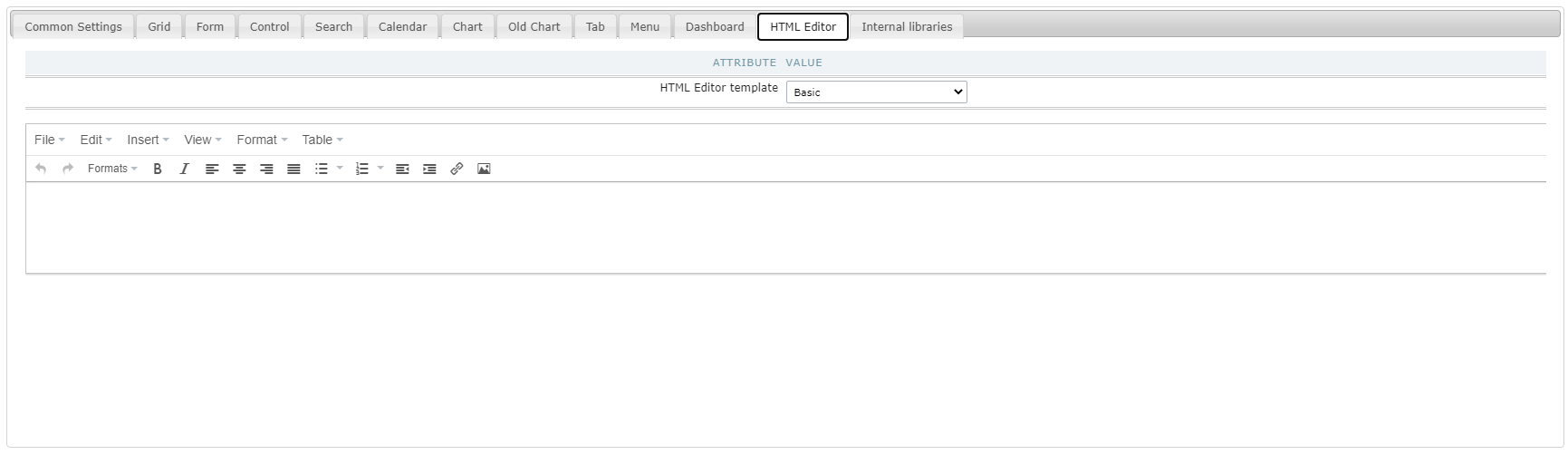 In the HTML Editor tab you have the option to edit the HTML Editor field used in the system, Location, button alignment, status bars and the buttons that will be displayed on the component can be edited here.