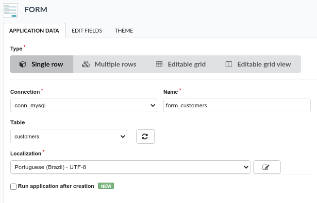 1. We create an application of the Form type