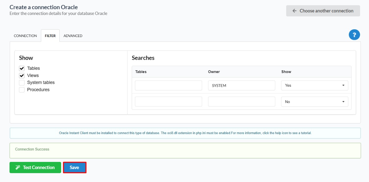 - DBMS Driver: We should select the appropriate connection driver according to the Oracle database.