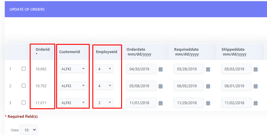 9. That done, we will now create the Form using the 'orders' table. The detail for creating this Form is that we will configure the fields {customerid} and {employeeid} to be of type 'Select', in addition to also enabling the option "Use Select2".