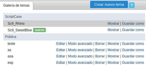 Se abrirá una página que mostrará los esquemas predeterminados de Scriptcase.