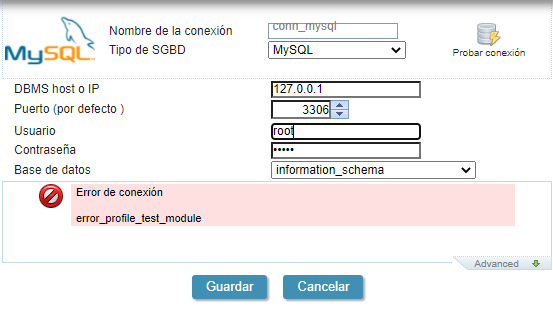 “Error de conexión: error_profile_test_module”