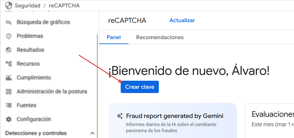 4. Generar claves de reCAPTCHA