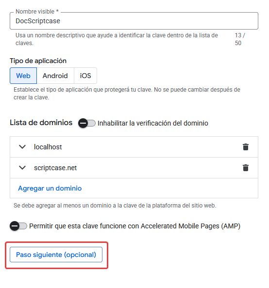 - Nombre para mostrar: Nombre descriptivo para identificar la clave dentro de la lista de claves