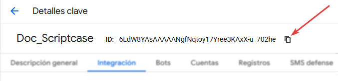 - Site Key - Ingrese el ID (7. Obtener la Site Key)