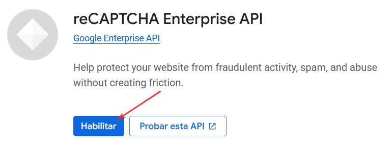 3. Active la reCAPTCHA Enterprise API en el proyecto