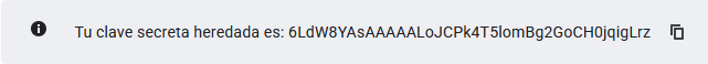 Después de finalizar la configuración de reCAPTCHA, la clave se mostrará al inicio de la página.