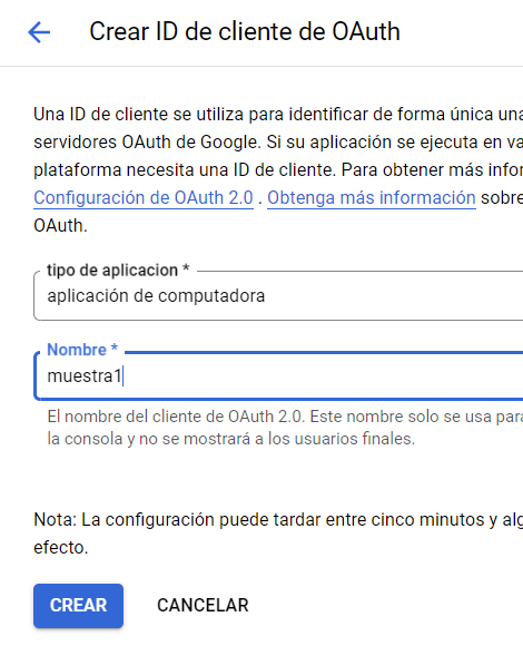 9) Seleccione la opción "Aplicación de computadora", escriba el nombre y haga clic en "Crear":