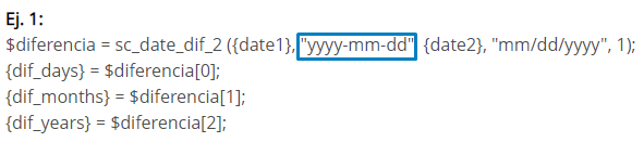 Para calcular la diferencia entre dos fechas tenemos a la macro sc_date_dif_2, en este ejemplo se verá como funciona y como utilizarla.