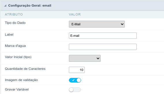 Neste exemplo iremos mostrar como utilizar um campo com a opção de "Imagem de validação" ativada.