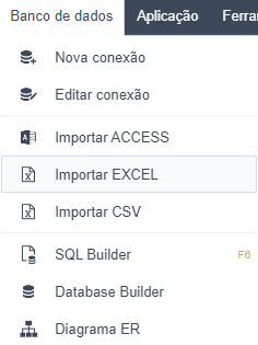 Para iniciar o processo, escolha o menu Banco de dados > Importar EXCEL,