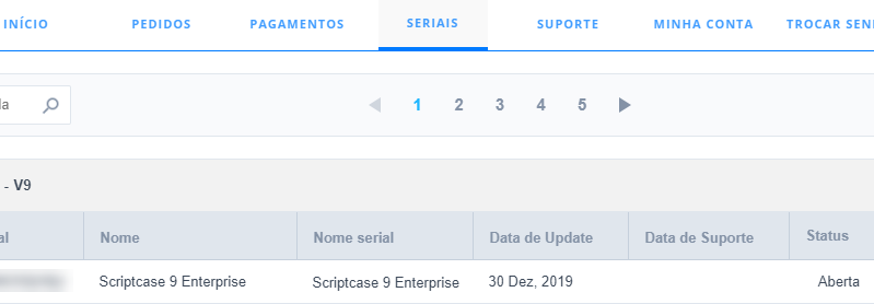 Após o login, clique na aba Seriais para visualizar suas licenças aberta para registro.